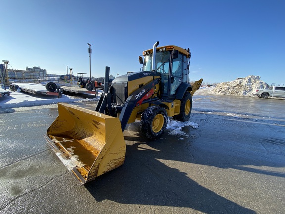 Cab w/ AC, 3 Lever, Pilot Controls; Turbo, 4X4 Power Shift Tran, Ride Control; Extendible Dipper; Tool Carrier; Aux Hydraulics, Front Coupler, Thumb; General Purpose Bkt, 30" Bucket; 19.5 Tires...