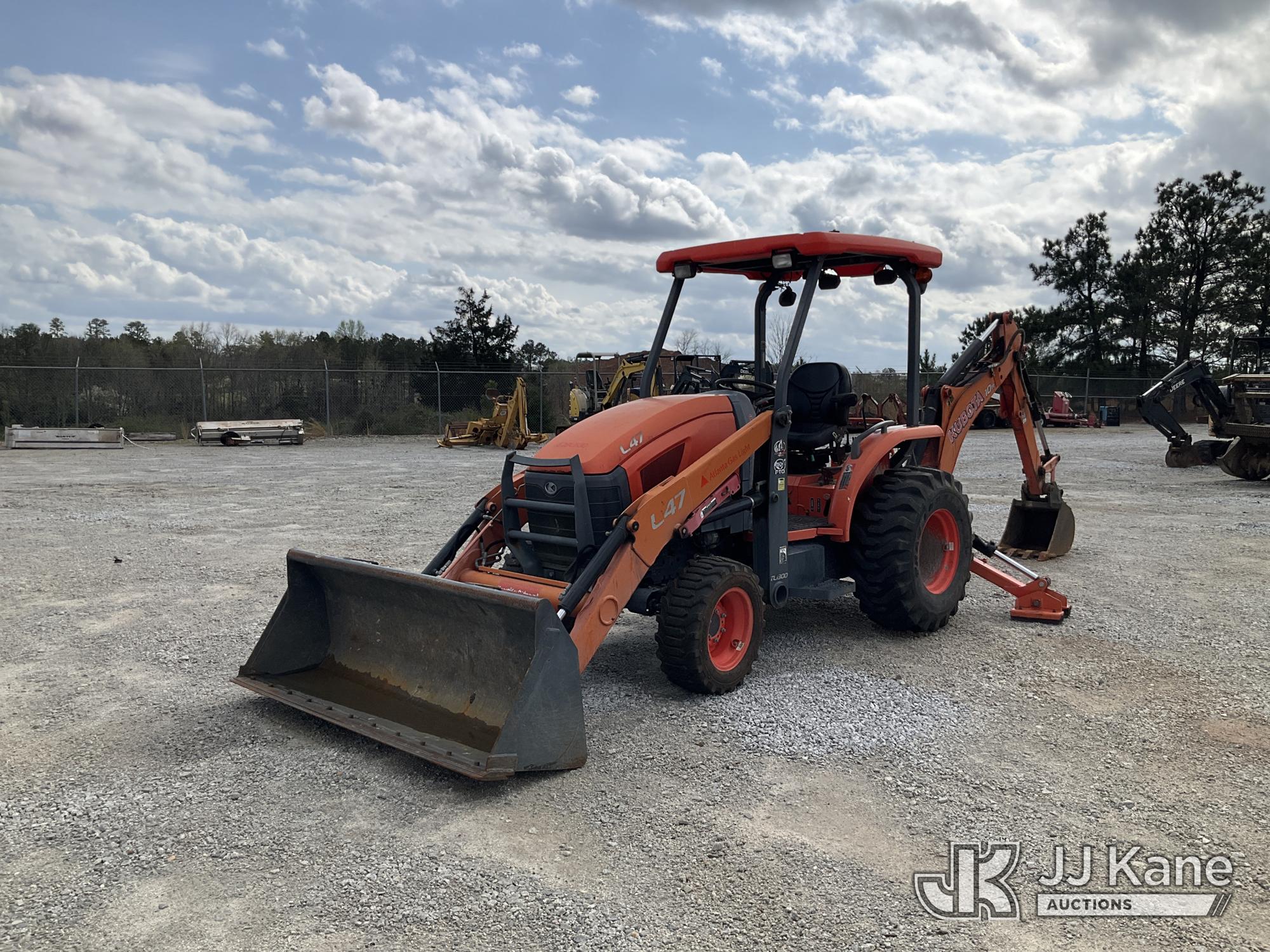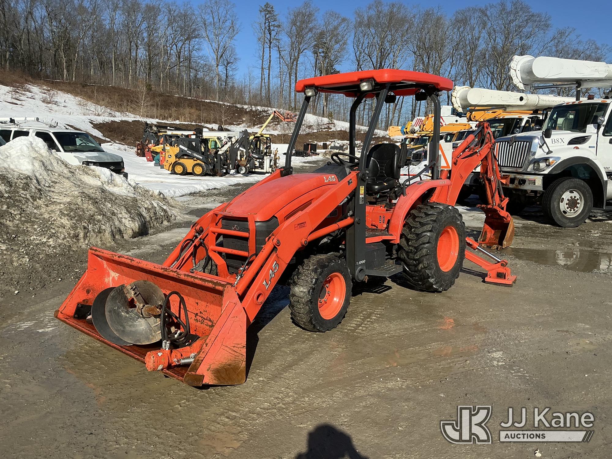 2009 Kubota L45 4X4 Mini Utility Tractor Loader Backhoe, s/n 50184, Kubota diesel, Hydrostatic, with GP Bucket, TL1000 Loader, BT1000A Backhoe, hyd thumb, 78 in. Snow Plow, 35 SRS Hyd 3 Point Hitch Po...